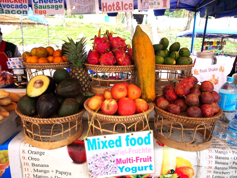 Comptez entre 10000 et 25000 kips le sandwich. Entre 10000 et 15000 la crêpe et 15000 le bol de muesli avec yaourt et fruit. Les stands se trouvent juste avant le Mont Phusi.